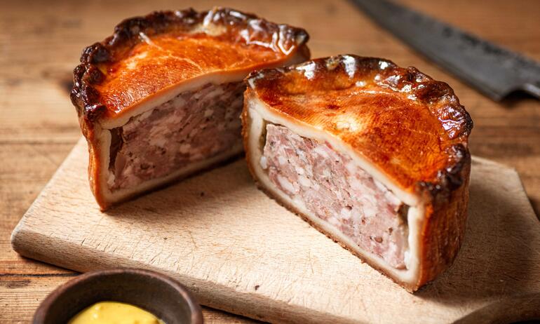 Serve it alongside tangy pickles, rustic winter cheeses, or with our Cranberry, Port & Orange Sauce, whose sweet and warming notes beautifully complement the pie. Perfectly sliced thick for a hearty Boxing Day lunch or tucked into a festive buffet, it's the kind of dish that invites lingering around the table, sharing stories and laughter over every slice.