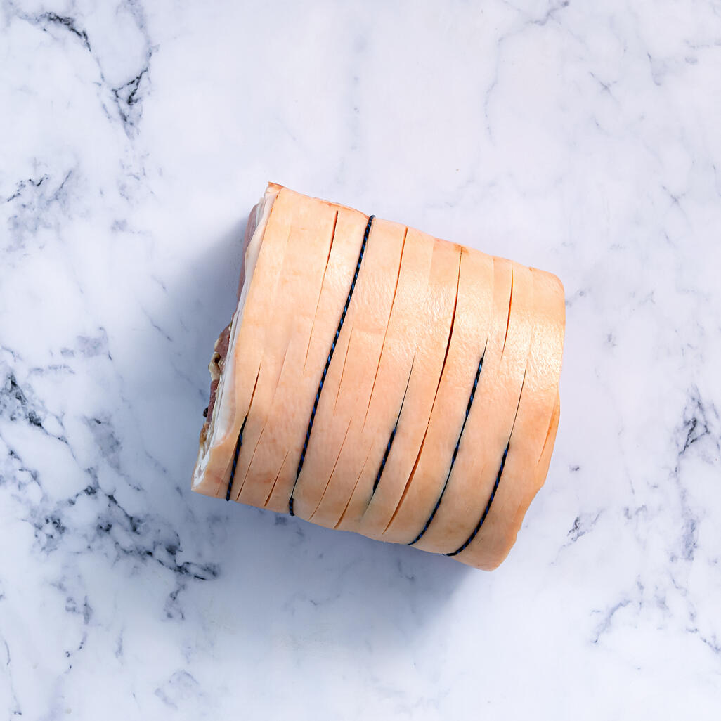 Our famous porchetta is inspired by traditions of Italian butchery. Using creamy, flavoursome free-range pork loin and belly that's been skilfully trimmed, boned, and rolled with the traditional seasoning of fennel seeds, garlic, and lemon zest to enhance the savoury quality of the meat. Our porchetta is ideal for year-round feasting - whether on the barbecue or for a Christmas roast - and stands out for the quality of the pork and a balanced level of seasoning. The pork is sourced from free-range British pigs to offer typical succulence and flavour, well-suited to pairing with sweet and tangy sauces from our pantry.