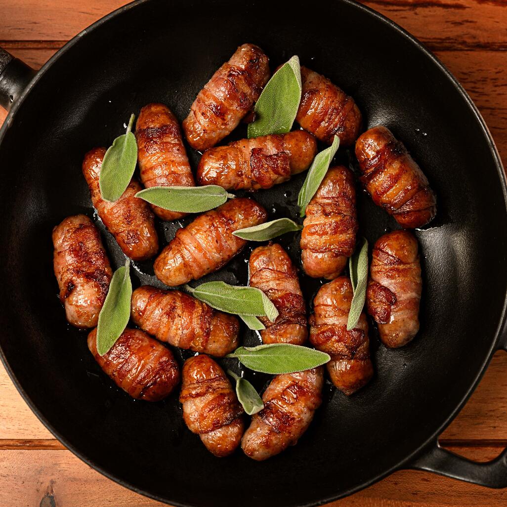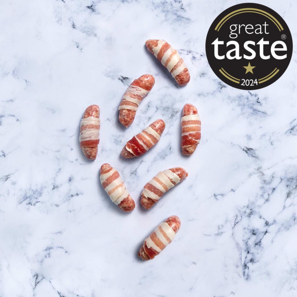 Made from the finest pork, these bite-sized cocktail sausages are wrapped in a blanket of streaky bacon that will crisp up snugly and caramelise around the pigs. They will easily make for the best party canape and a show-stopping side dish to any roast dinner.