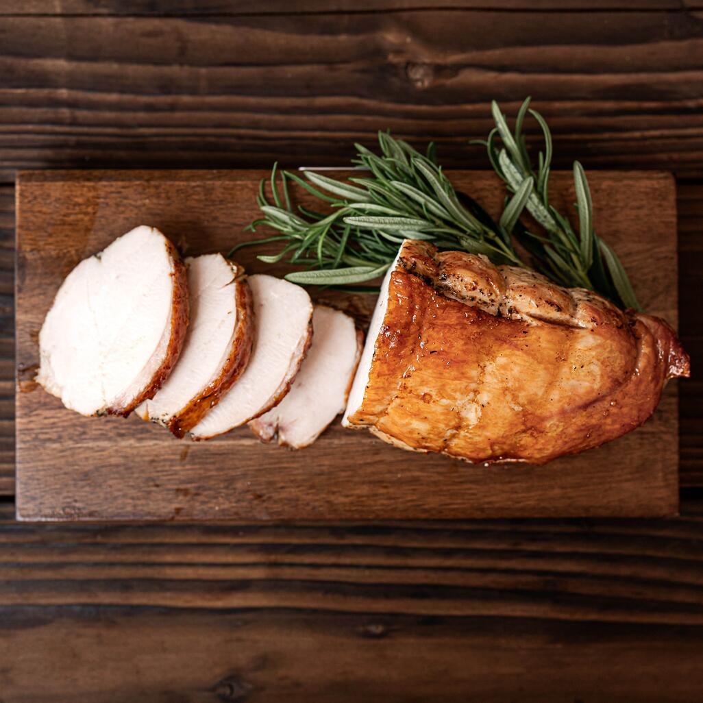 Our turkey flocks mature outdoors at their own pace to ensure the flavoursome and succulent meat essential for a celebration roast. The turkey breast is carefully cut away from the whole bird, leaving the entirety of the boneless breast meat intact for roasting. This is an increasingly popular option at Christmas or Easter time for slightly smaller tables or for those who prefer the breast meat.